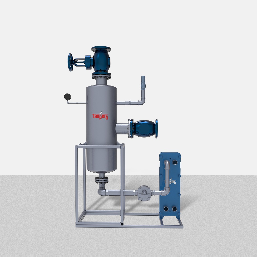 Tanpera Flaş Buhar Sistemi, buhar tesisatlarında oluşan flaş buharı geri kazanarak enerji verimliliğini artıran bir prensiple çalışır. Yüksek basınçlı kondens veya blöf işlemi sırasında basınç düşmesi nedeniyle oluşan flaş buhar, sistem tarafından yakalanarak özel bir ayırıcı içerisinde su ve buhar fazlarına ayrılır. Elde edilen flaş buhar, degazör besi suyu ısıtması, kondens ısıtma veya tesis içi buhar ihtiyacı gibi farklı proseslerde yeniden kullanılır. Böylece, enerji kayıpları önlenir, su ve kimyasal tüketimi azalır, sistem genelinde daha verimli bir buhar yönetimi sağlanır.