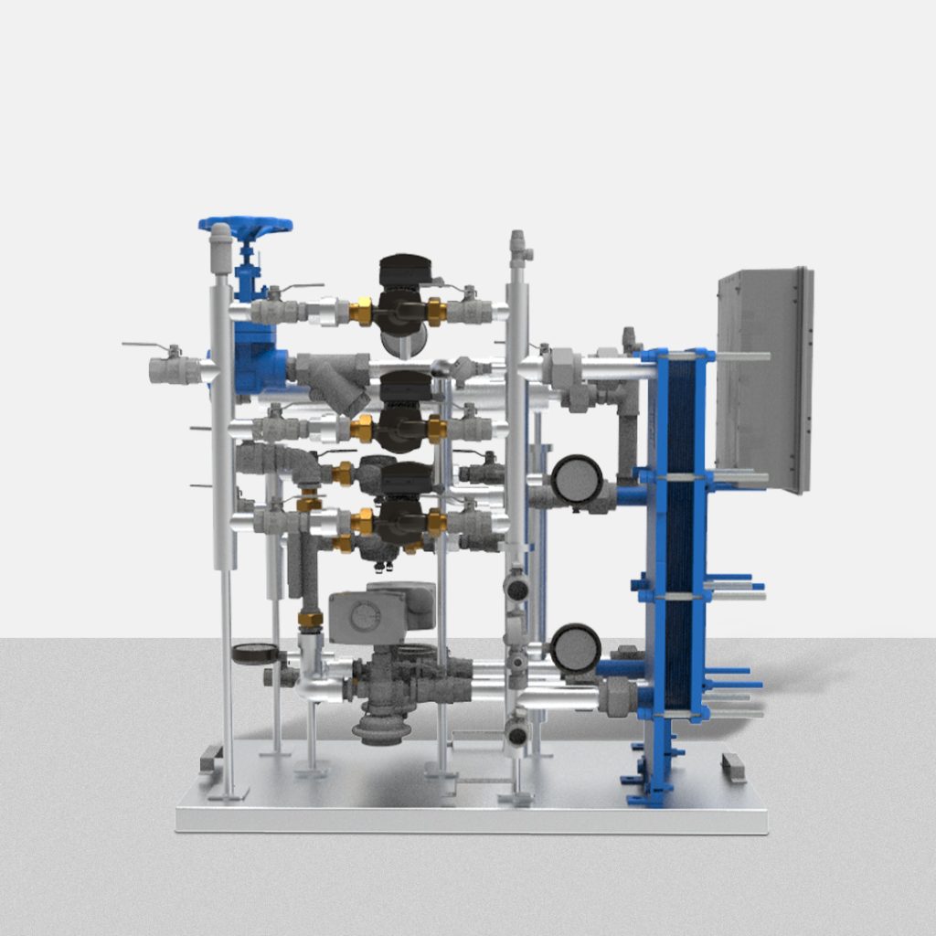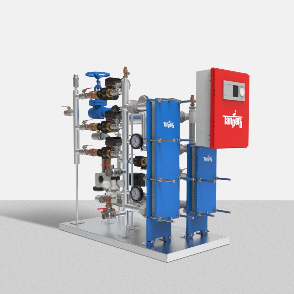 HEATBOX Bina Altı Isı İstasyonu, merkezi ısıtma tesislerinden gelen sıcak suyu bireysel konutlara veya ticari alanlara uygun şekilde yönlendiren ve ısı transferini sağlayan akıllı bir sistemdir. Plakalı ısı eşanjörü sayesinde şebeke suyu ve sistem suyunu birbirinden ayırarak güvenli, hijyenik ve verimli bir ısı transferi sağlar.